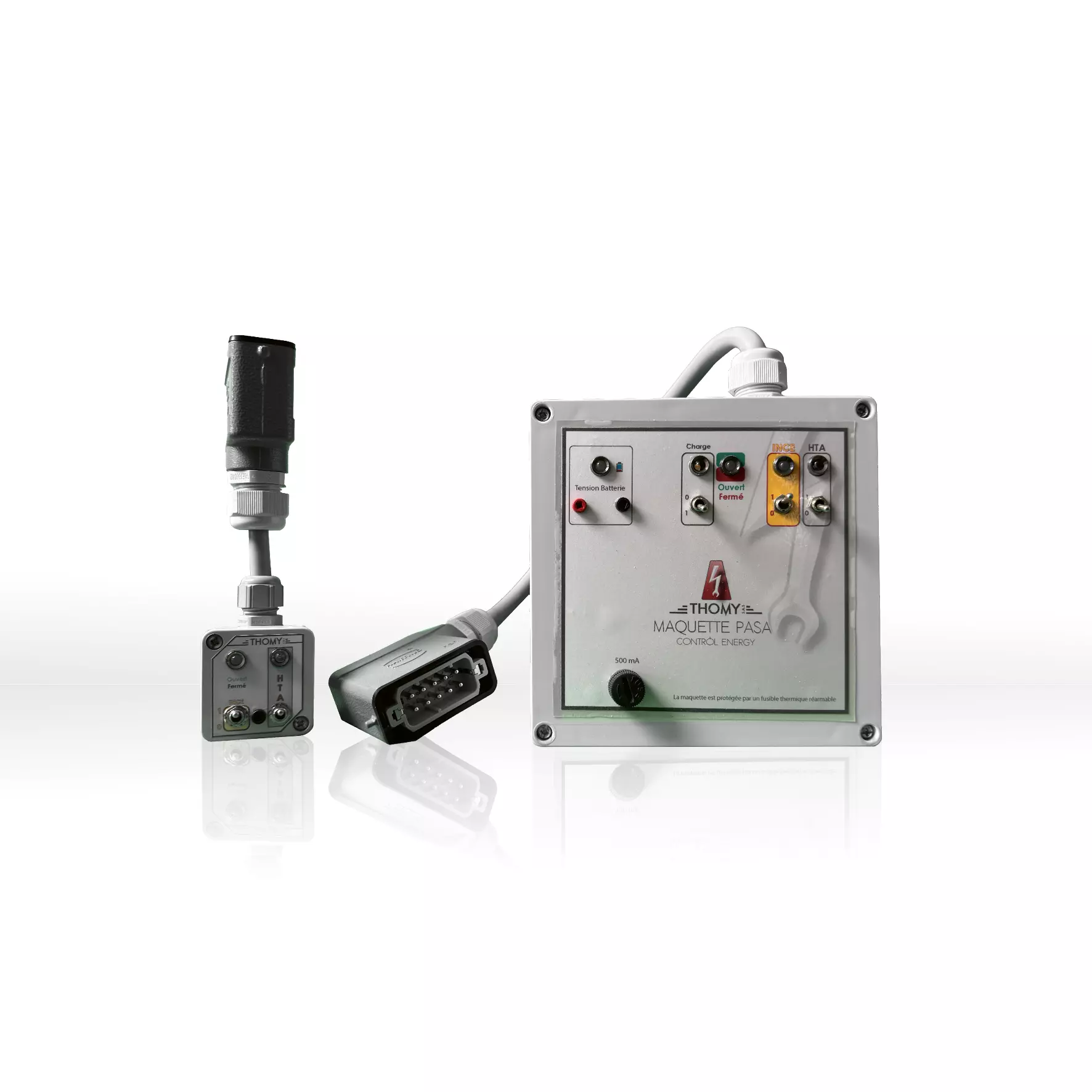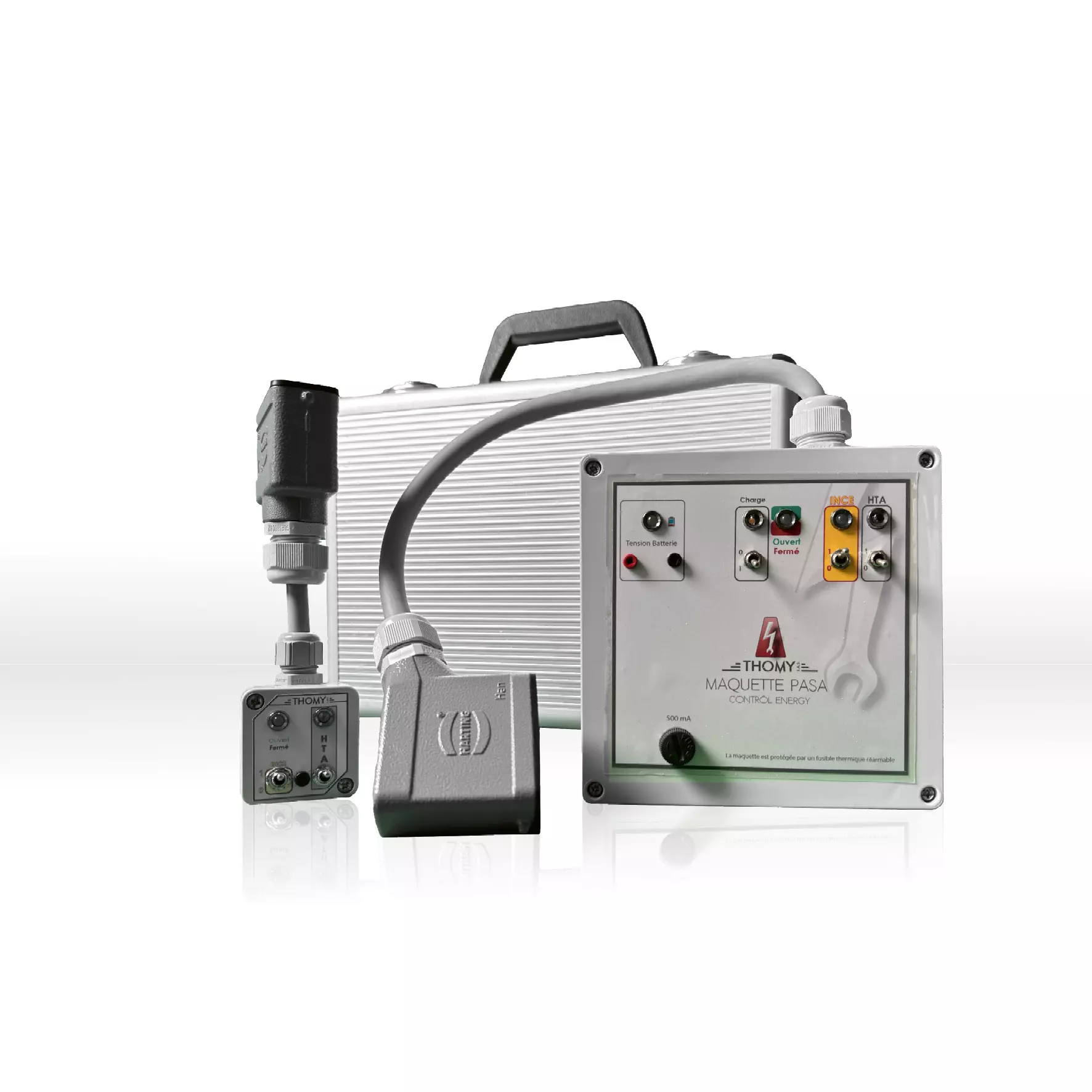 La maquette PASA de contrôle de Thomy pour les coffrets offrent une solution parfaite pour assurer l’efficacité de vos systèmes automatisés. Elles permettent une vérification aisée de la connexion de la télécommande et du fonctionnement de l’automatisme, sans nécessité d’intervenir sur l’interrupteur HTA. Conçues pour les tests en demi-maquette, ces outils simplifient considérablement le contrôle des automatismes dans les tableaux HTA à double dérivation.
